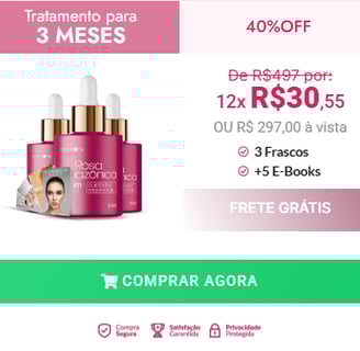 Com a Rosa Mosqueta Amazônica™, você experimenta um efeito lifting instantâneo que pode literalmente apagar anos do seu rosto. Imagine olhar no espelho e ver uma versão mais jovem e radiante de si mesma, sempre que desejar. A juventude está agora ao seu alcance!